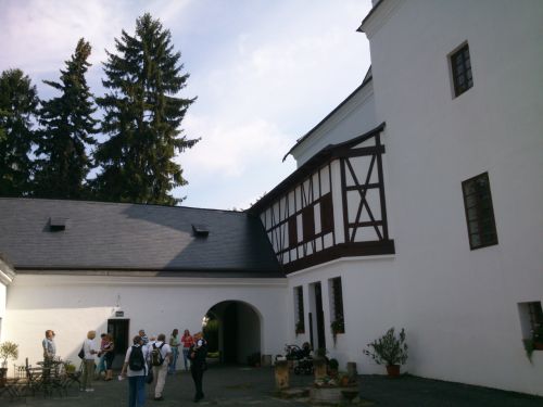 Touto místností končí prohlídka prvního okruhu. Hned si jdeme koupit vstupenku i na ten druhý a než nastane čas prohlídky, potulujeme se po nádvoří.
