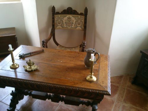Kupuje nábytek čistě renesanční a my tu teď stojíme v místnosti, která mohla přesně takhle vypadat v době dostavby zámku v 16. století. Taková renesanční místnost je naprostý unikát - na každém zámku samozřejmě žilo panstvo, které bylo stejně tupým stádem jako my dneska a proto v době baroka vyházelo renesanční nábytek, protože nebylo dost "in" a "trendy", barokní nábytek nahradil klasicistní, po něm empírový nebo biedermeierový... výsledkem je, že až na čestné výjimky pochází na našich zámcích nábytek z 19. století, některé kusy nábytku jsou barokní... ale renesančního nábytku je pomálu. O to víc překvapí takováhle nádherná renesanční místnost.