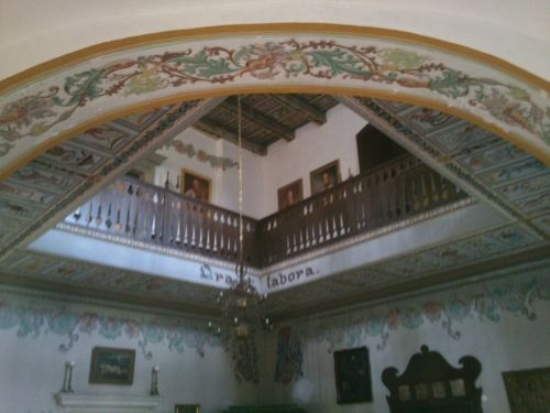Další krásu spatříme, když pozvedneme oči ke stropu, který je zcela původní, nádherný malovaný renesanční záklopový strop.